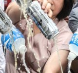 韓国ソウルの日本大使館前で日本製ビールやポカリをぶちまけるデモが開催!!
