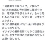 大型台風19号接近で週末のライブ・イベントの対応に各運営が追われる「イキり運営の姫事絶対値も台風に屈する」「ギュウ農フェスはギリギリ調整中」