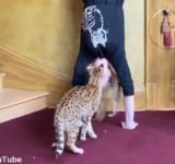 猫「この人間…登れる!?」逆立ちした飼い主がキャットタワーになる(動画)