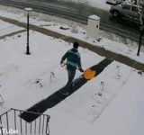 雪かきが終わったと思ったら…予想外のハプニング(動画)