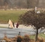 なんて面倒見のいい犬なの…子どもと一緒にスクールバスを待つ(動画)