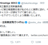 【報ステ印象操作】自民・世耕氏、立憲・蓮舫氏にツイート取り下げを要請「テレ朝は謝りました」