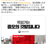 【大韓民国政府公式Twitter】「一緒に叫んでください #BanTheFlag『旭日旗は憎しみの旗です』五輪での使用はいけません」@hellopolicy