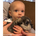 泣いてる赤ちゃんに子犬を抱かせたら…表情の変化に心温まる(動画)