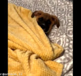 なんて賢いの…自分で毛布を掛けられる犬(動画)