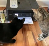 猫2匹…プリンターの動きにひたすら翻弄される(動画)