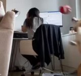 パソコン作業中の飼い主におもちゃをぶん投げる犬…コントロール抜群!(動画)
