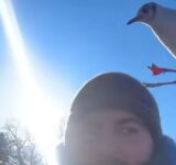 男性のニット帽を気に入ったカモメが…華麗に着地する(動画)