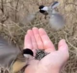 「野生の小鳥が手の平やスマホの上に乗ってくる…」マサチューセッツ州の森の中(動画)