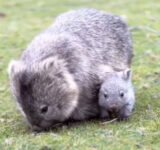 ママのお腹からひょっこり顔を出すウォンバットの赤ちゃん