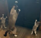 子猫たちが…ママ猫のおかしな動きをマネする(動画)