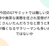 今回のG7サミットでは難しい交渉や無茶な実務を任され官僚がたくさんいたんだろうなと思うと胃が痛くなるサラリーマンも多いのではないか