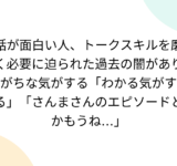 話が面白い人、トークスキルを磨く必要に迫られた過去の闇がありがちな気がする「わかる気がする」「さんまさんのエピソードとかもうね…」