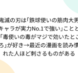 鬼滅の刃は「鉄球使いの筋肉大男キャラが実力No.1で強い」ことと「毒使いの毒がマジで効いたところ」が好き→最近の漫画を読み慣れた人ほど刺さるものがある
