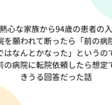 熱心な家族から94歳の患者の入院を願われて断ったら「前の病院ではなんとかなった」というので前の病院に転院依頼したら想定できうる回答だった話