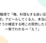 職場で「俺、料理もする良い旦那」アピールしてくる人、本当にそうか確認する時この質問したら一発でわかる→「え?」