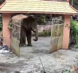 「ドーン!」と門を開けて入ってくる野生のゾウ…民家の庭を一周して立ち去って行く(動画)
