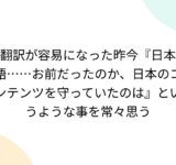 翻訳が容易になった昨今『日本語……お前だったのか、日本のコンテンツを守っていたのは』というような事を常々思う