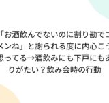 「お酒飲んでないのに割り勘でゴメンね」と謝られる度に内心こう思ってる→酒飲みにも下戸にもありがたい?飲み会時の行動
