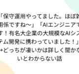 「保守運用やってました。ほぼ雑用係ですね〜」「AIエンジニアです!有名大企業の大規模なAIシステム開発に携わっていました!」→どっちが凄いかは詳しく聞かないとわからない話