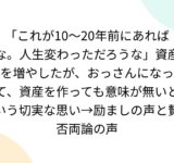 「これが10〜20年前にあればな。人生変わっただろうな」資産を増やしたが、おっさんになって、資産を作っても意味が無いという切実な思い→励ましの声と賛否両論の声
