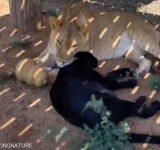 「ライオンとヒョウってこんなに大きさが違うんだ…」仲良しの2匹