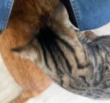 GUのこのスカート履いて猫カフェ行ったら、猫ちゃんの執着がすごかった…染料にマタタビ?→GU本社「猫が好むような原材料は使用してません」