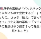 🇺🇸息子の高校が「バックパックじゃないもので登校するデー」だったの。さっき「敗北」て言って送ってきた友達の写真→「ウチの子の友達はやり過ぎ!って先生に怒られてた」