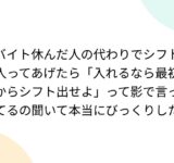 バイト休んだ人の代わりでシフト入ってあげたら「入れるなら最初からシフト出せよ」って影で言ってるの聞いて本当にびっくりした