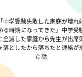 「中学受験失敗した家庭が壊れ始める時期になってきた」中学受験に全滅した家庭から先生が出席簿を落としたから落ちたと連絡が来た話