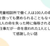 児童相談所で働く人は100人の命を救っても褒められることもなく1人の命を失った時に侮辱される仕事だが…命を救われた1人として感謝したい話