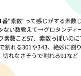 1番"素数"って感じがする素数じゃない数教えて→グロタンディーク素数こと57、素数っぽいのに7で割れる301や343、絶妙に割り切れなさそうで割れる91など