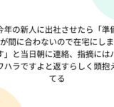 今年の新人に出社させたら「準備が間に合わないので在宅にします」と当日朝に連絡、指摘にはパワハラですよと返すらしく頭抱えてる