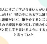 知人にすごく字がうまい人がいるんだけど「頭の中にある字は誰でも達筆だけど、筆を介するとズレるので練習を繰り返して頭の中の字と同じ字を書けるようにする」と言っていた