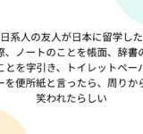 日系人の友人が日本に留学した際、ノートのことを帳面、辞書のことを字引き、トイレットペーパーを便所紙と言ったら、周りから笑われたらしい