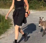 「生後2日でこの足取りなの!?」赤ちゃんロバが女性の後ろをトコトコとついて行く