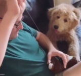 ぬいぐるみを針と糸で修繕していたら…犬がソワソワし始めた