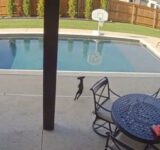 鳥を追いかけた犬…勢い余ってプールに落ちてしまう(動画)