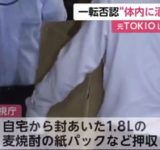 山口達也容疑者の自宅から1.8リットルサイズの紙パックの麦焼酎が押収される
