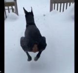 雪に跳びこむドーベルマン「わーい」→5秒後「さむっ、帰る!」(動画)