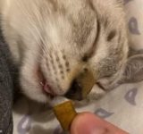 眠った猫の鼻先におやつを差し出したら…夢の中で食べてる!?(動画)