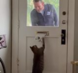 猫「まだかなー、まだかなー」郵便屋さんとドア越しの交流(動画)