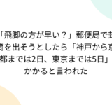 「飛脚の方が早い?」郵便局で封筒を出そうとしたら「神戸から京都までは2日、東京までは5日」かかると言われた