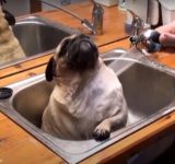 パグ「身も心も溶けちゃう…」温かいシャワーを浴びてうっとり(動画)