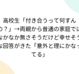 高校生「付き合うって何すんの?」→両親から普通の家庭ではなかなか無さそうだけど幸せそうな回答がきた「意外と理にかなってる」