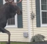 巨大生物「ヘラジカ」が住宅地を走ると…このド迫力!(動画)