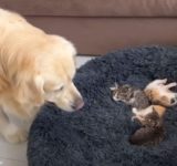 「さわりたいけど我慢…」猫の赤ちゃんと対面して興奮する大きな犬(動画)