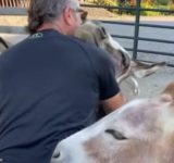 ピタッとくっついて離れない…男性の子守唄にうっとりするロバたち(動画)