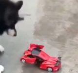 犬が変身する車のおもちゃを見て驚く→その映像のインパクトの強さに見た人も驚く