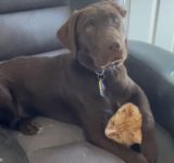 大きな犬が猫を溺愛…ガッチリ抱きしめて離さない(動画)
